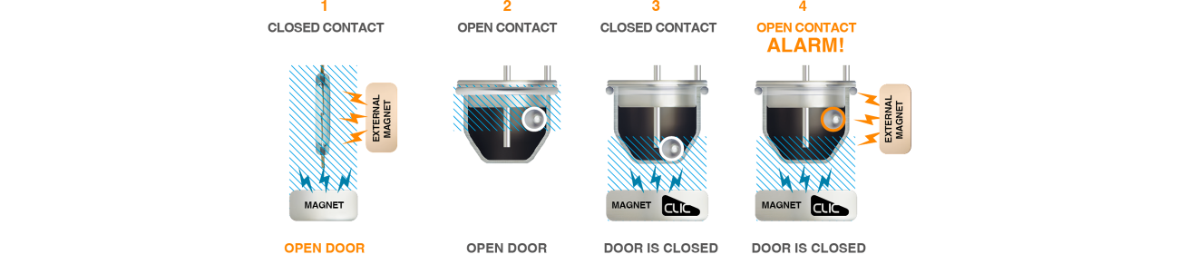 CLIC anti-masking magnetic contacts are compatible with all control unit models.