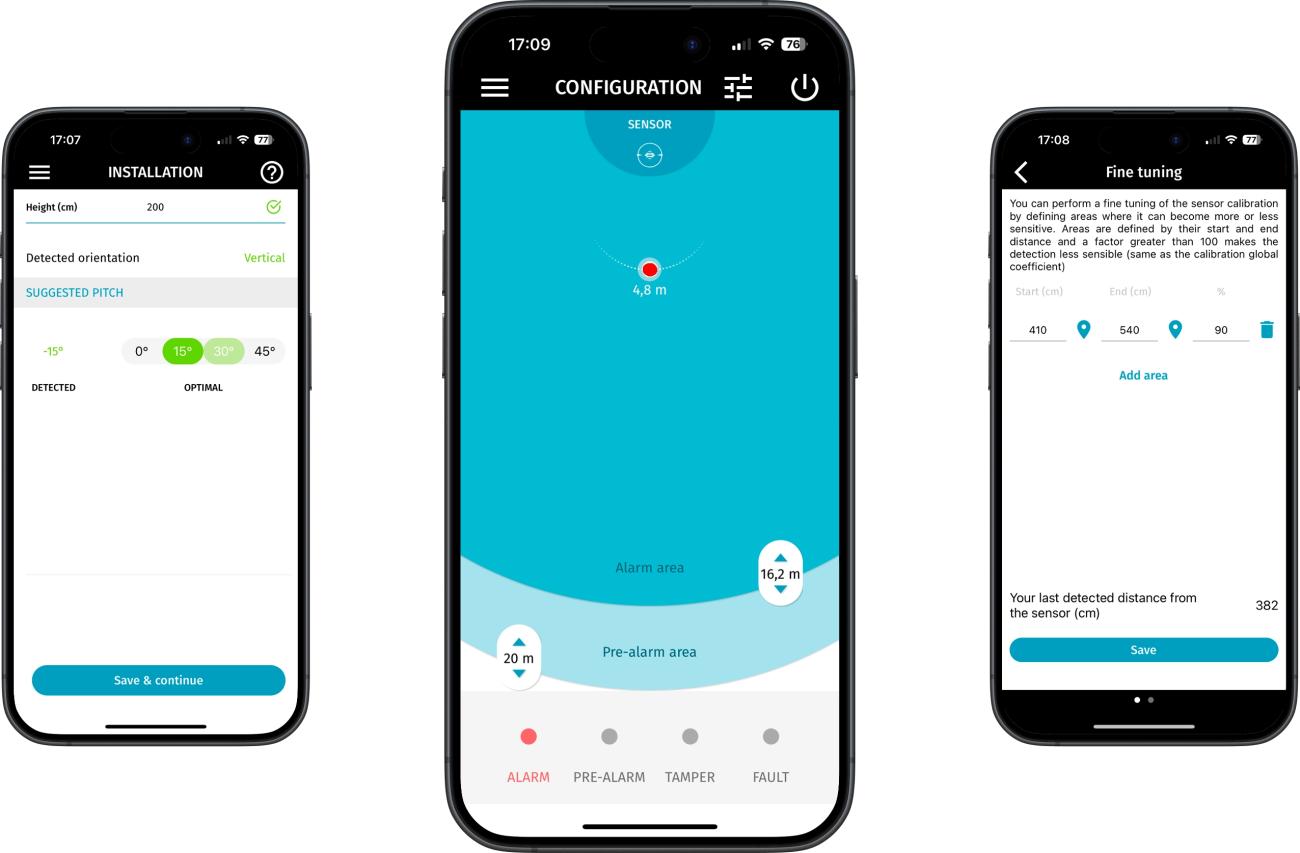 Using the system's accurate intruder distance detection capability, an installer can easily create separate alarm and pre-alarm zones and set sensor working distances for unparalleled flexibility.