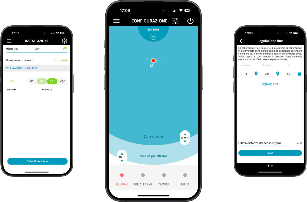 Grazie al rilevamento preciso della distanza degli intrusi, l’installatore può contare sulla capacità di creare zone di allarme e pre-allarme distinte, e di impostare le distanze di lavoro dei sensori per una flessibilità senza paragoni.